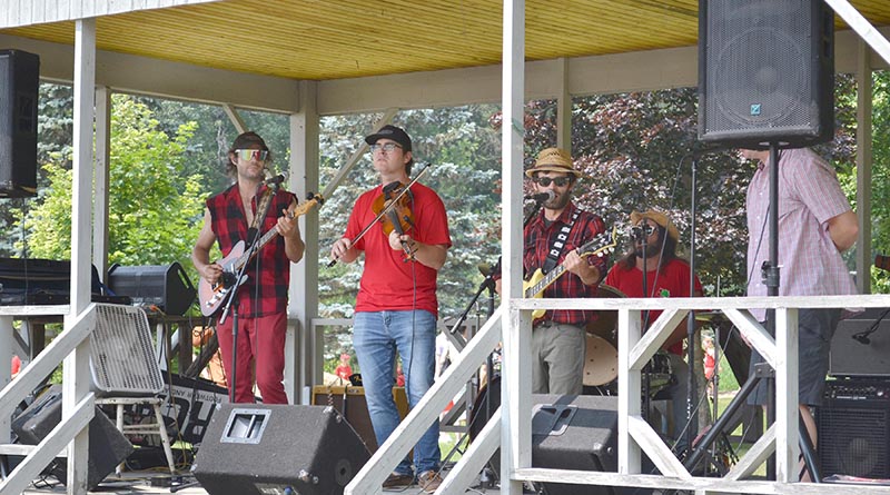 Canada Day festivities in Shawville began on Friday with The Junction Boys playing for a crowd dancing on Main Street and the unveiling of a banner for the logo competition.