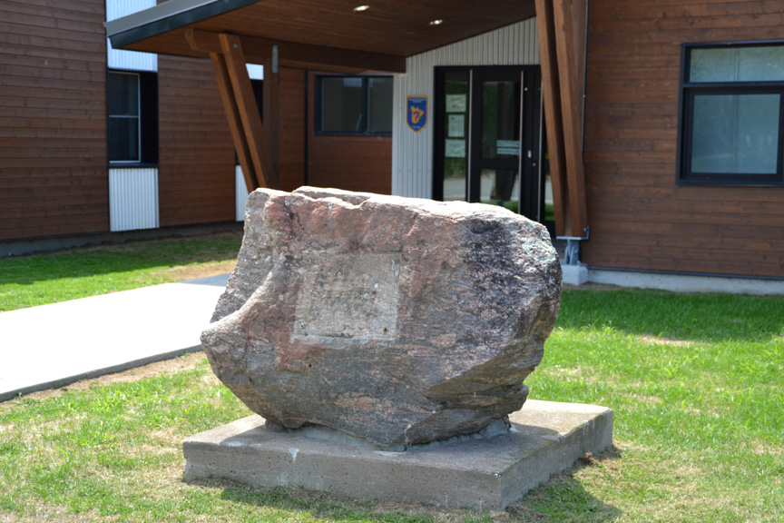 The monument in question was unveiled in its new location in front of the MRC offices by Warden Jane Toller in December of 2017, to mark Pontiac Council’s 170th anniversary. The monument – a sizable stone sitting on a concrete slab with a metal plaque bolted to its face – was created in 1947 to mark the 100th anniversary of Pontiac county council’s first sitting on Dec. 13, 1847.