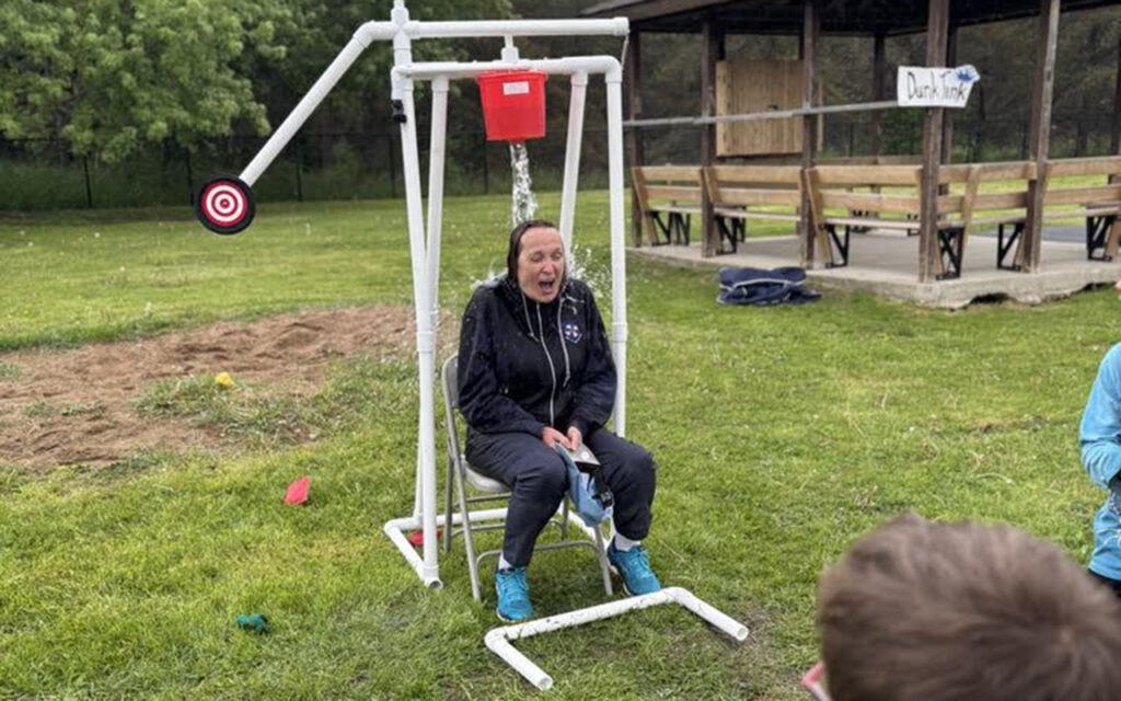 She said a number of students knew she would be making an appearance at the dunk tank and that one student named Teo Proulx had confidently declared, “I’m going to get you,” and was indeed the student who hit the target that triggered the bucket of water to fall on her head.