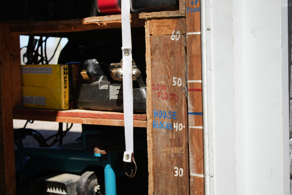 It’s hard for Ward to forget what the high water level was – he has markings on his house and garage as a visual reminder of the 2019 floods. The special shelving he’s since built is designed to be above that high water level.