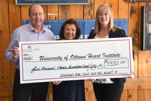 Jim Orban, President and CEO of the University of Ottawa Heart Institute Foundation, was at Atkinson’s Bar in Shawville on Thursday to accept the proceeds from the annual Golf for the Heart tournament. Organizer September Hamilton was pleased that this year’s event brought in an impressive $5,350. From left: Orban, Claudette Stanton and Hamilton.