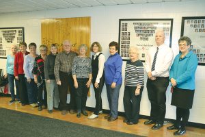 On Thursday, the cast and crew of Women Vote Indirect presented a check for $2,010 to Pontiac High School Principal Debra Stephens to go towards the school’s auditorium restoration fund. Written and directed by retired teacher Joan Conrod, the play follows the lives of the women behind the scenes during Canada’s Confederation and was performed at the Shawville R.A. in September. From left: Conrod, Brenda Daye, Karen Smith, Muriel Davies, Mary Hamilton, Eason Russell, Cheryl Campbell, Barbara Haughton, Marguerite Carmichael, Nancy Alexander, Gordon Graham and Stephens.