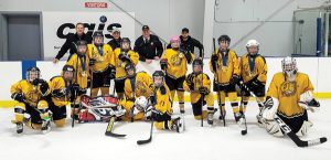 Pontiac Lions Atom C take home gold at the Lanark tournament on Saturday, Nov. 18. Coaches in back from left: Kevin Findlay, Brandan Smith, head coach Craig McCormick and Marc Maurier. Middle row from left: Ewan Smith, Dominik Laroche, Camryn Sheppard, Jaycie Hodgins, Nicolas Giles and Noah Hines. Front row front left: Conner Findlay, Chase Wittig-Thompson, goalie Elaina Illauq #33, Isaac Graham, Olivier Maurier, Conner McCormick and goalie Daniel Brousseau. Submitted by Aliqa Illauq