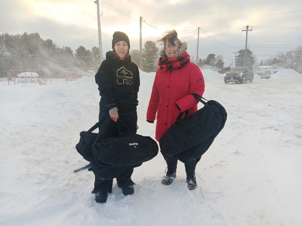Chapeau Recreation Association volunteer Vanessa Paquette (left) lends Pauline Lepine (right) some snowshoes as part of the RA’s free borrowing program.