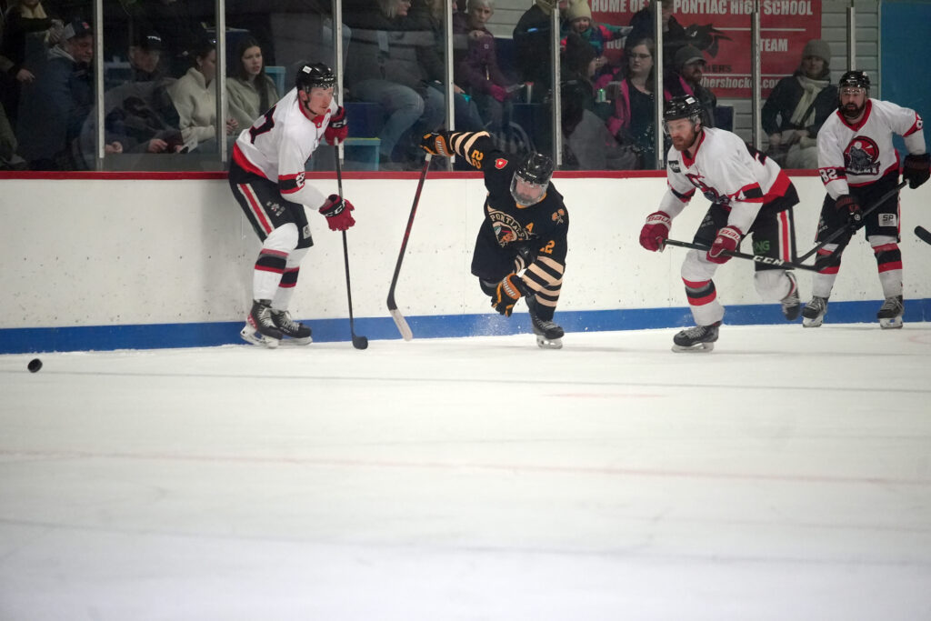 The score 4-2 going into the third period, the Pontiacs still had a comeback in their sights. But a total of thirteen penalties handed down to both teams in the period seemed to distract from the mission, Findlay said.