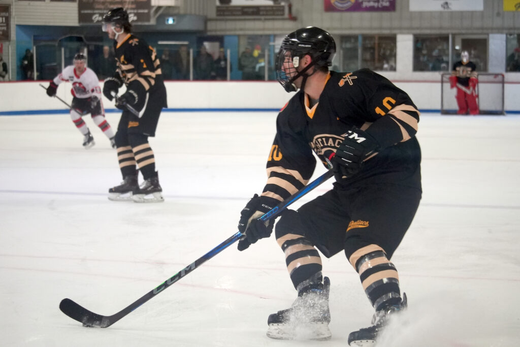 The second period saw the Pontiacs get a handful of quality chances on goal. One shot hit the crossbar, landing just in front of the goal line. Another was stopped point-blank by the Wolves netminder. Findlay told THE EQUITY after the game his team just didn’t seem to get the lucky bounces like their opponents did.