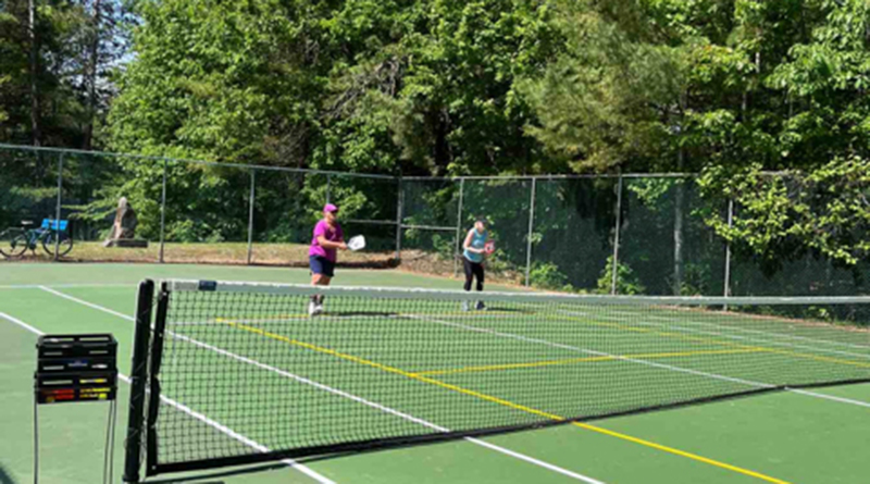 Jane Packham, left, and Annie Doswell, right, are making the most of the new pickleball courts in Norway Bay. The sport of pickleball is making a sweeping appearance across the Pontiac, with many municipalities making adjustments to their tennis courts and outdoor skating rinks to accommodate the sport.