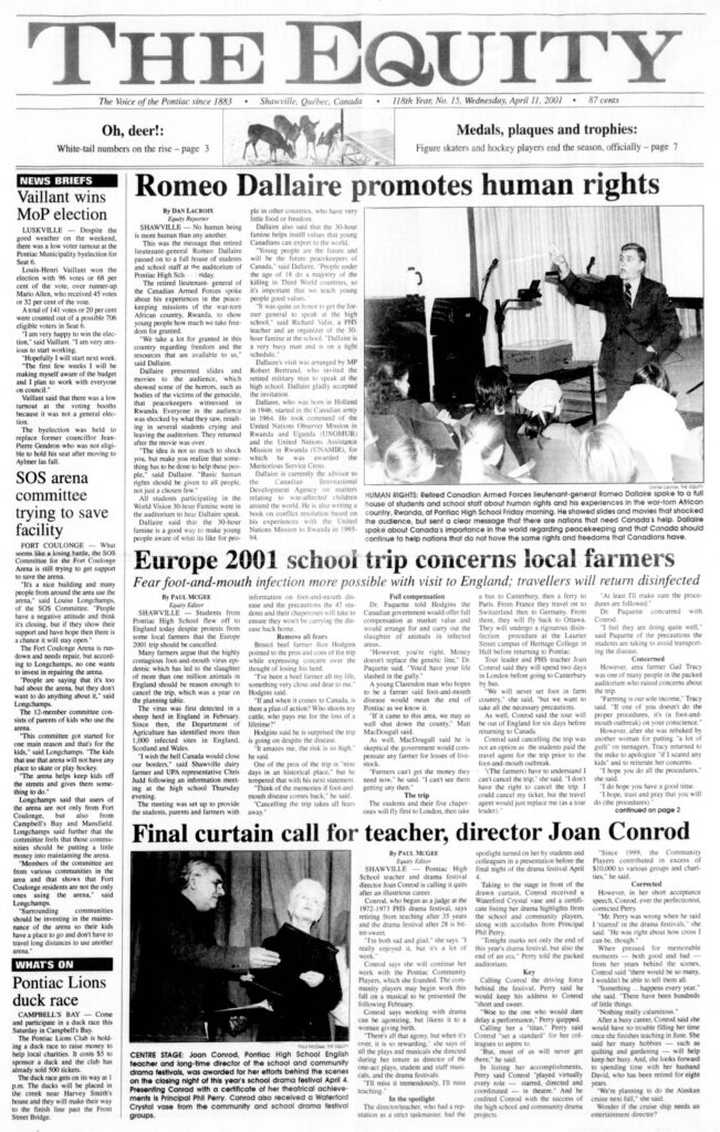 “I wish the hell Canada would close our borders,” said Shawville dairy farmer and UPA representative Chris Judd following an information meeting at the high school Thursday evening. The meeting was set up to provide the students, parents and farmers with information on foot-and-mouth disease and the precautions the 47 students and their chaperones will take to ensure they won’t be carrying the disease back home.