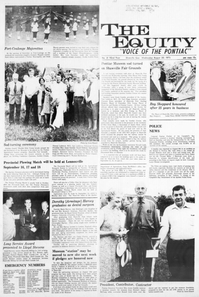 Museum “station” may be moved to new site next week: Since the sods-turning ceremony on August 13th, good progress has been made for the plans to move the old C.P.R. station to its new site on the Shawville Fair Grounds.