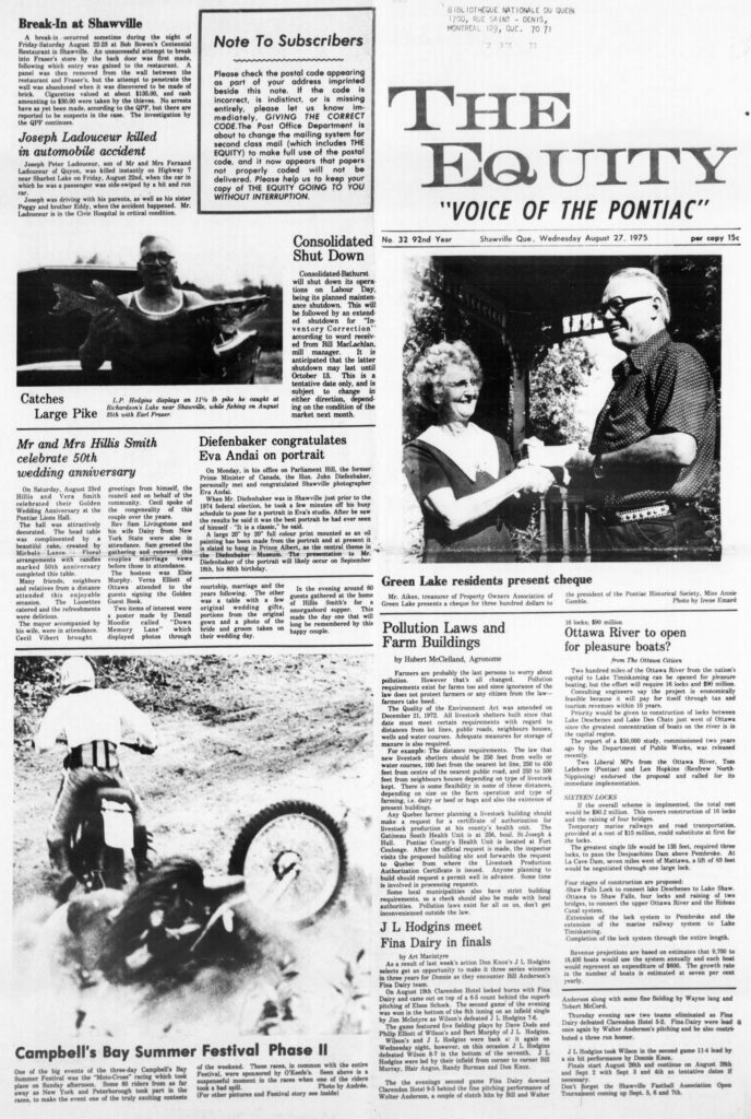 On Aug. 19, Clarendon Hotel locked horns with Fina Dairy and came out on top of a 6-5 count, behind the superb pitching of Elson Schock. The second game of the evening was won in the bottom of the 8th inning on an infield single by Jim McIntyre as Wilson’s defeated J.L. Hodgins 7-6.