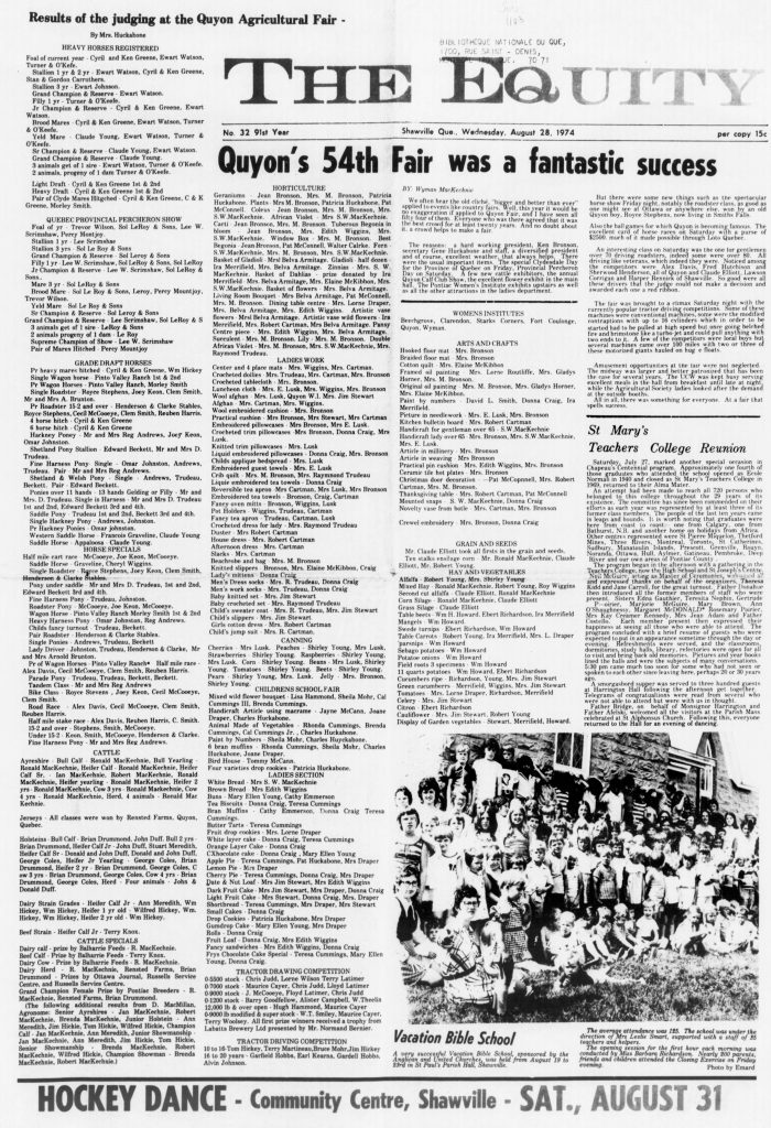 Quyon’s 54th fair was a fantastic success: We often hear the old cliché, “bigger and better than ever” applied to events. This year was no exaggeration in regard to Quyon Fair. Everyone who attended agreed that it was the best crowd they’ve had in the last twenty years.