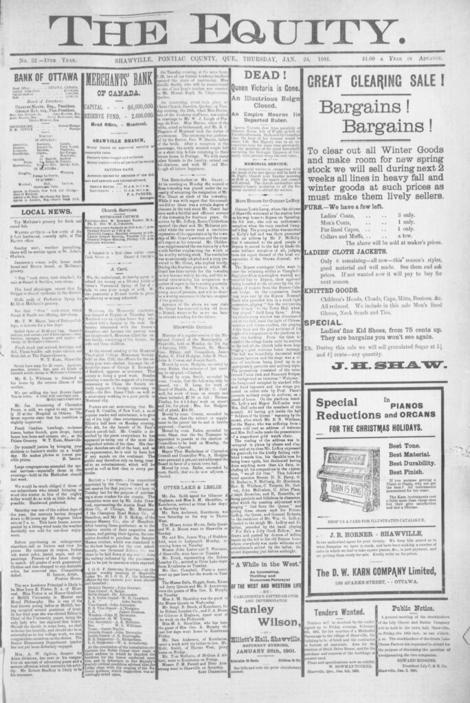 Queen Victoria is Gone: Queen Victoria died from paralysis at Osborne House, Isle of Wight, at 6:55 on Tuesday afternoon. Reckoned by Canadian time the hour of her decease would be about 1:55. Her Majesty was in an unconscious state for some time previously. All the members of the royal household, excepting the Dowager Empress of Germany, were present when the end came.