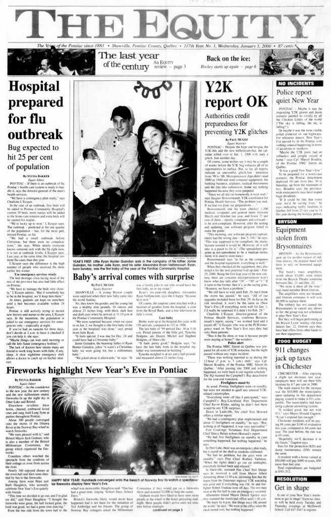 “Since we all did our homework, it went well,” says Jacques Boissonneault, Y2K coordinator for Pontiac Health Services. “The problem was real, if we had not done our preparations,” he said.
