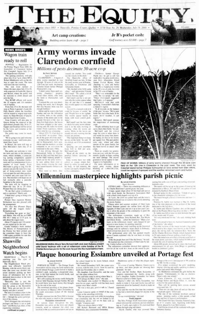 Army worms invade Clarendon cornfield: A legion of army worms munched its way through 50 acres of corn on the 12th line last week, decimating Calumet Island farmer Philippe Dumouchel’s crop.