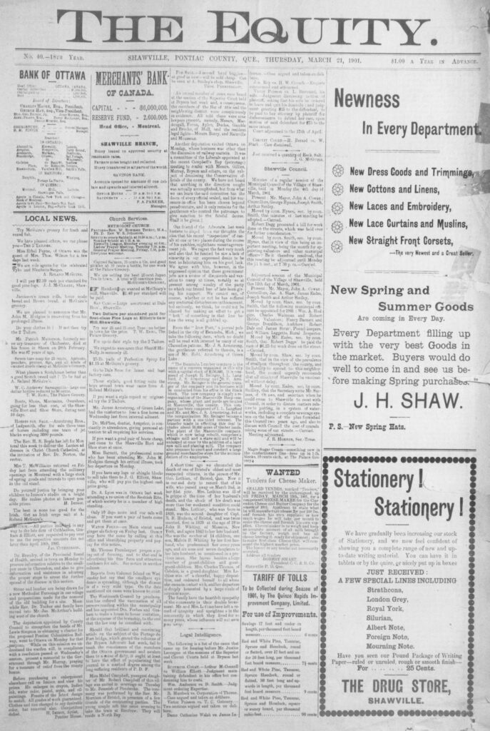 The deputation appointed by County Council to strengthen the hands of Mr. Lewis Simpson in obtaining a charter for the proposed Pontiac Colonization Railway, went to Ottawa on Monday for that purpose. While on this mission we understand the warden will, in compliance with a resolution passed at Wednesday’s session, present a memorial to the Government through Mr. Murray, praying for a measure of relief from the county bonus.