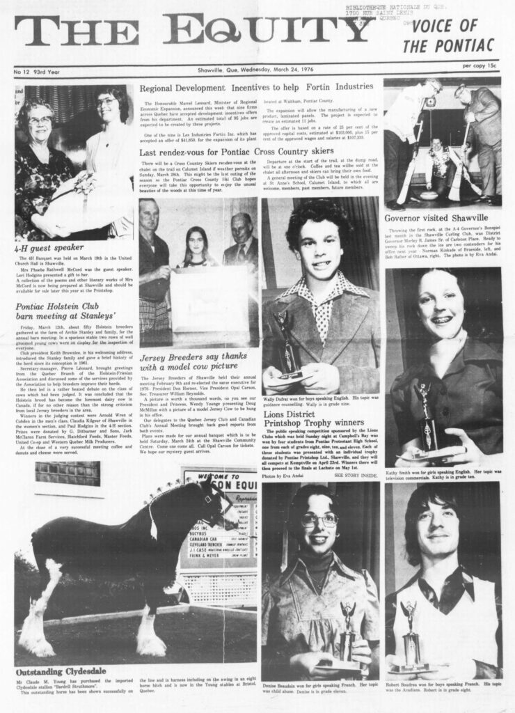 One of the nine is Les Industries Fortin Inc. which has accepted an offer of $41,850. for the expansion of its plant located at Waltham, Pontiac County. The expansion will allow the manufacturing of a new product, laminated panels. The project is expected to create an estimated 11 jobs. The offer is based on a rate of 25 per cent of the approved capital costs, estimated at $103,000, plus 15 per cent of the approved wages and salaries at $107,333.
