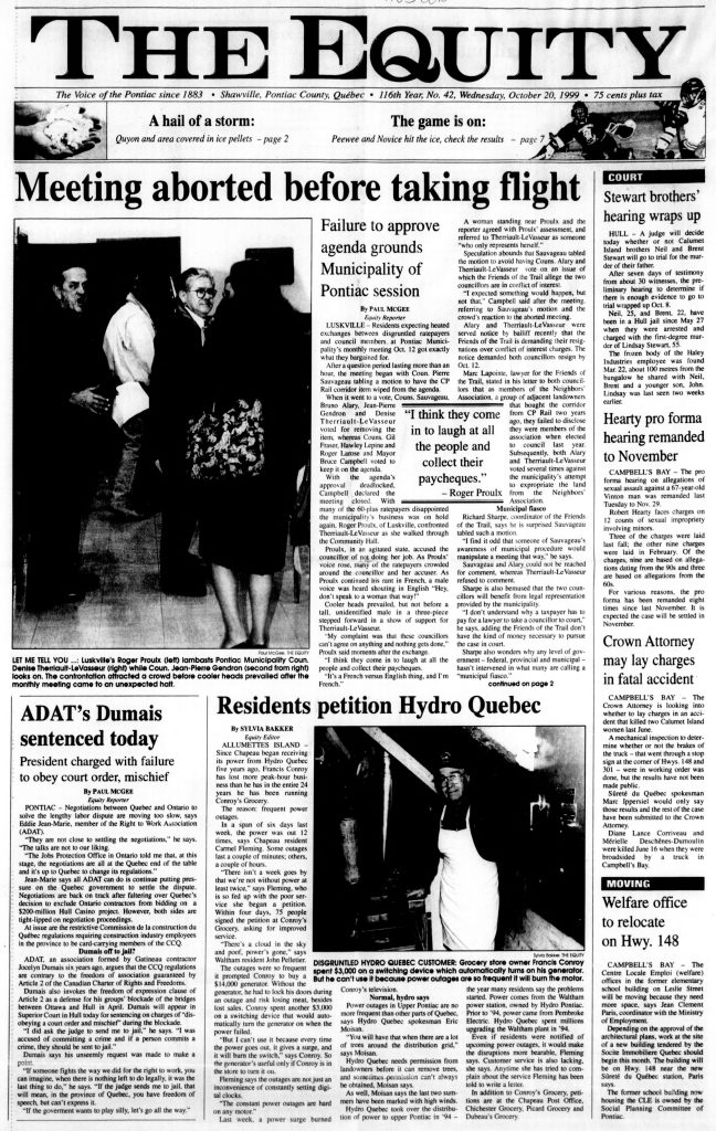Storm dumps hail onto Quyon: A short but severe storm dumped hail the size of moth balls over Quyon last week, leaving the town in a blanket of ice for about an hour in the early afternoon of Oct. 13.