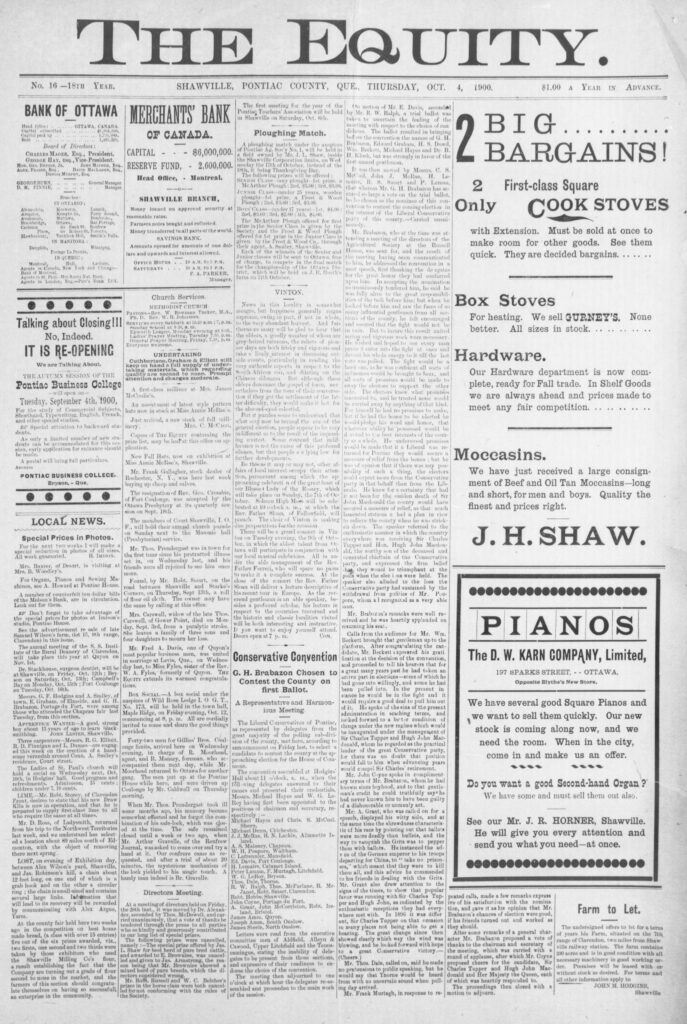 Local news: A number of counterfeit ten dollar bills of the Molson’s Bank, are in circulation. Look out for them.