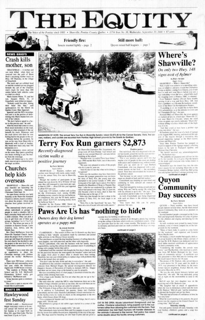 Paws Are Us has “nothing to hide”: The owners of Paws Are Us Kennels say they have “nothing to hide” despite accusations made by customers and animal rights activists in the Ottawa Citizen recently. Two purchasers accused the dog breeding business of selling them diseased puppies, one with parovirus and the other with ringworm. Nicole Labombard, who runs the business with her family, denied responsibility, saying they always let the customers know if something is wrong with a puppy before they sell it.