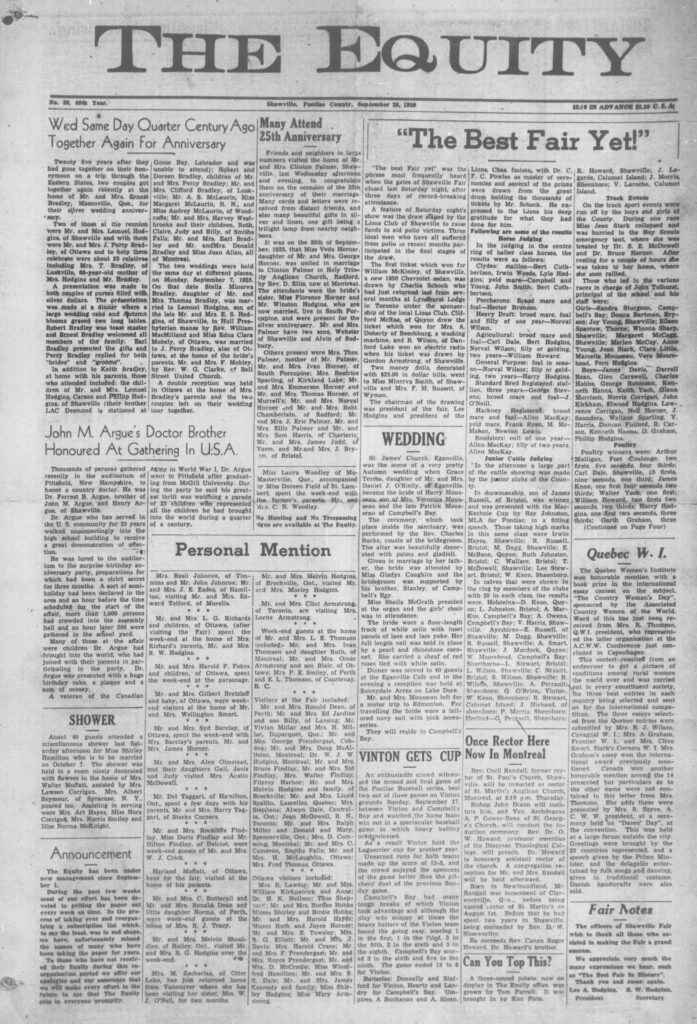 Vinton gets cup: An enthusiastic crowd witnessed the second and final game of the Pontiac Baseball series, best two out of three games on Vinton grounds Sunday, September 17, between Vinton and Campbell’s Bay and watched the home team win out in a spectacular baseball game in which heavy batting predominated. As a result Vinton hold the Laguerrier cup for another year.