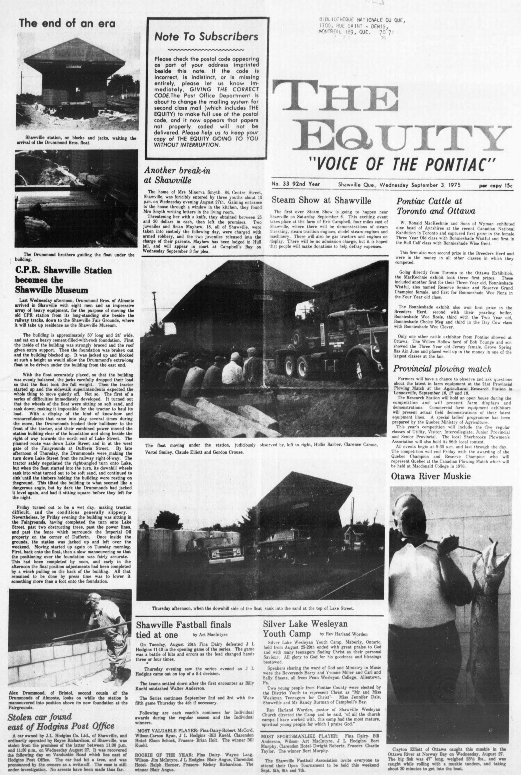 This event is for residents of Alleyn-et-Cawood, Otter Lake, Thorne, Shawville, Clarendon, Bristol and Portage-du-Fort.