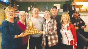 This year’s winners were Debbie Smith, lead, Mary Ann Abrams, second, Darleen Murphy, third, and Phyllis Wilson, skip, who added their team to the long list of winners on the bonspiel’s trophy.