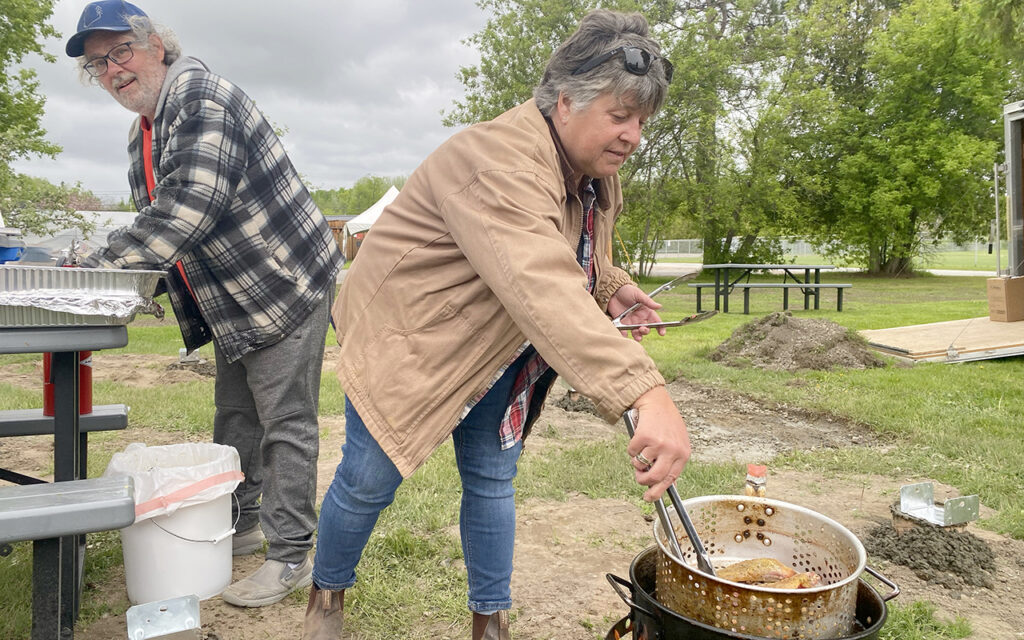 Darlene Morris was leading the fish frying station, pulling out piping hot fish from a pot of oil and piling them onto trays that were then carried back into the Legion to feed the masses.