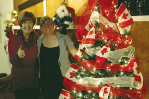 Downstairs, in light of the anniversary, they draped a Christmas tree in Canadian flags and colours, with the help and suggestion from Sally Cavan. This tree drew many com;iments, standing out in the room as a unique addition.