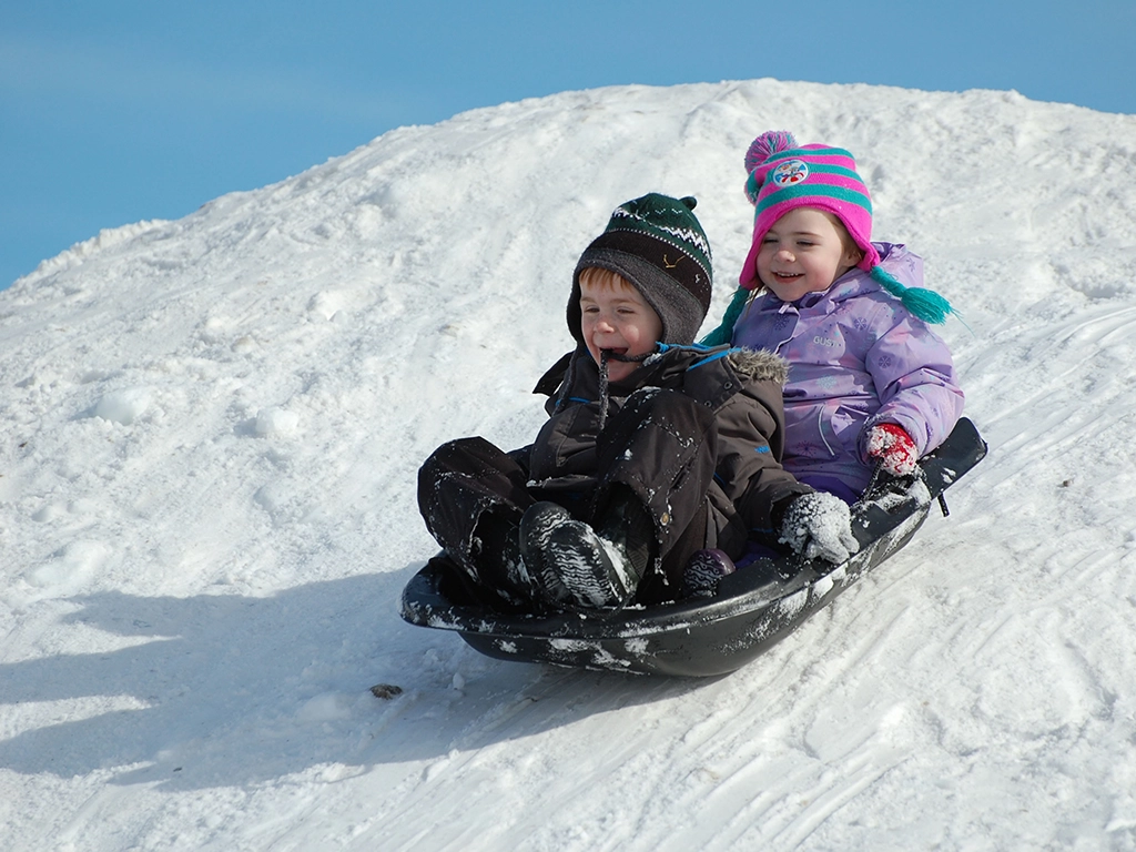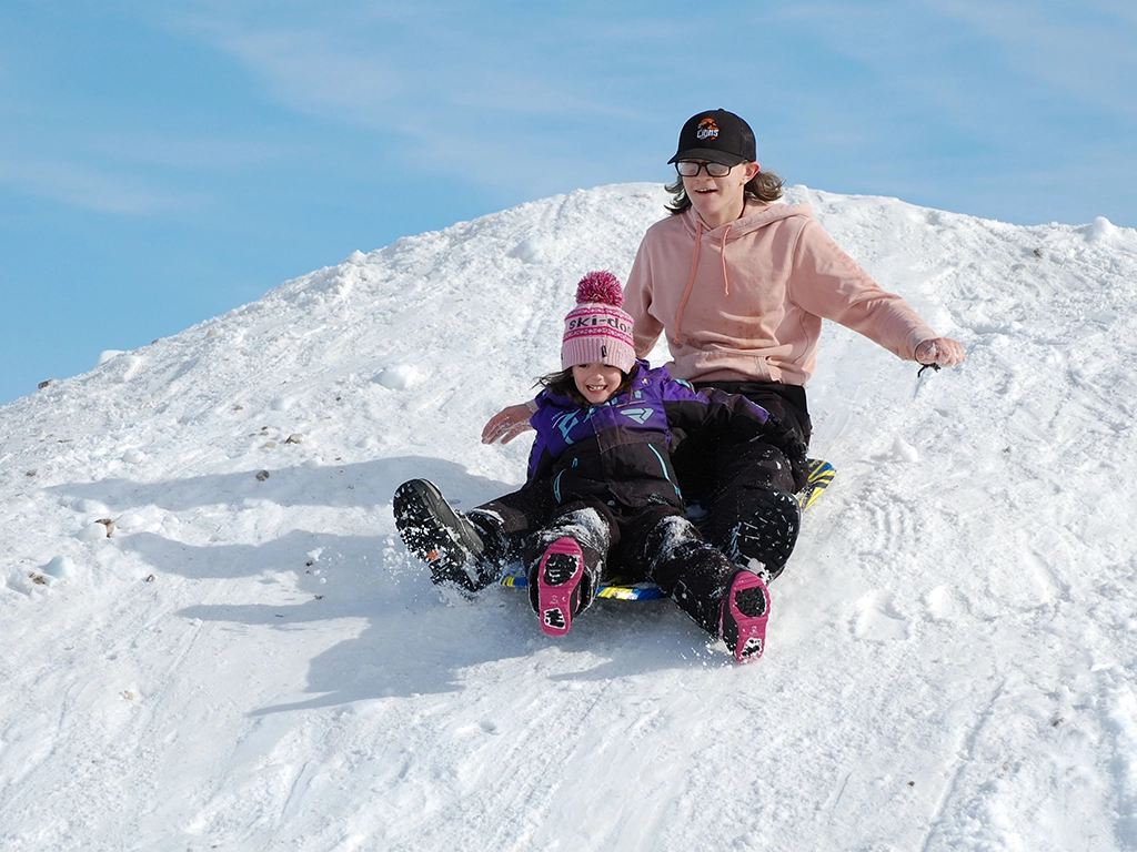 The sledding hill, built tall and steep, was covered in bumps and grooves that made for a speedy ride full of jumps. Cheers of joy and giggles could be heard as kids took turns flying down the hill before climbing back up, to do it all over again.
