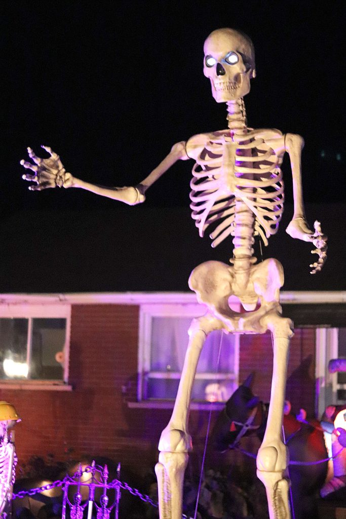 at their home in the aptly named Litchfield since the first week of September, and officially opened for the season on Oct. 9. In the front of their house on chemin Stewart, you can find decorations from dragons and giant spiders to their brand new Ghostbusters setup and towering skeleton with eyes that seem to follow visitors.