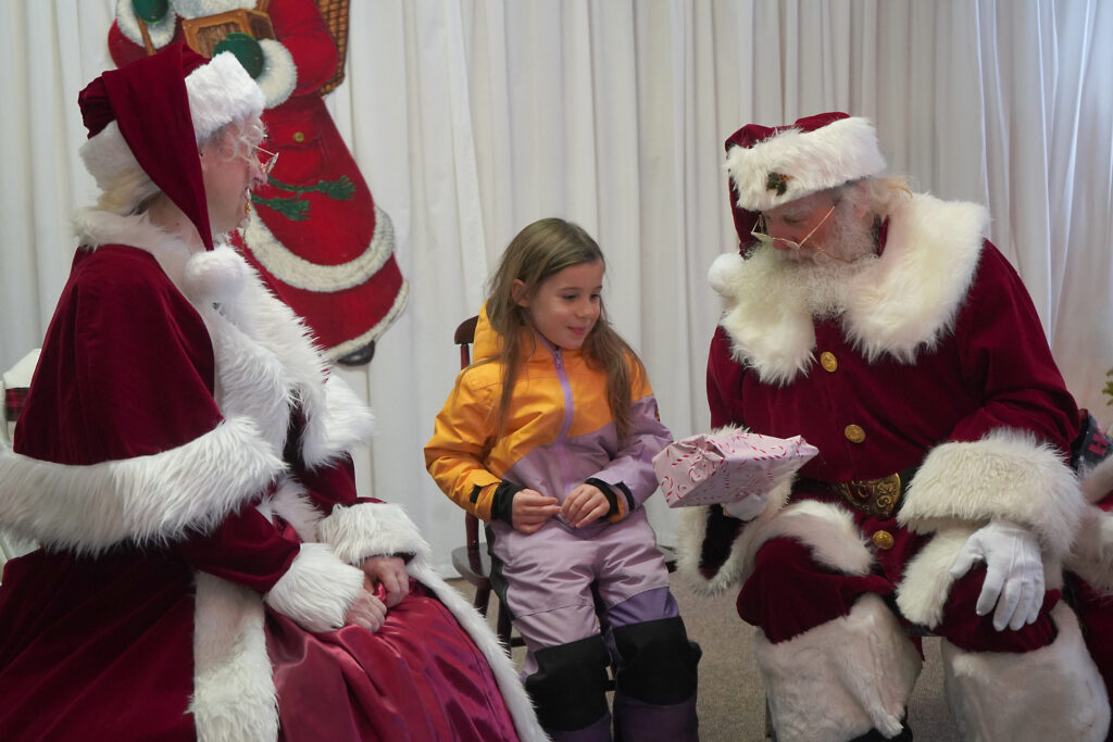 Atley Lafleur gets her moment with Santa and Mrs. Claus inside Danford Lake’s Bethany Hall on Saturday morning. Photo: K.C. Jordan