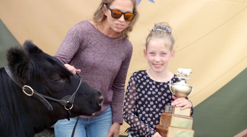 A red ribbon, a trophy and five bucks went to four-year-old Marissa Ingalls of Shawville with her Jersey calf “Hoya” in the Pee Wee (Assisted) Dairy Showmanship class judged by Justin Crowley of Hastings, Ontario, whose father John judged similar classes at Shawville Fair some 30 years ago.
