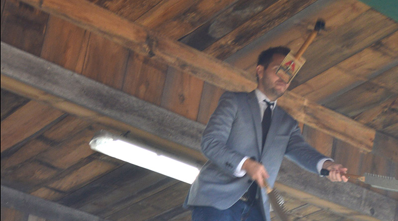 For the juggling routine, Rankin balanced himself atop a crate which stood on top of a tube which sat on top of another crate. Not only did he juggle his own weight, before the crowd knew it he was flawlessly tossing two knives and a stick with two active rat traps attached.