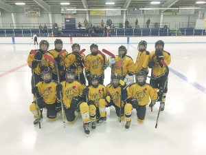 Pontiac Bantam A Lions remembered the war veterans by wearing poppies and taping their sticks red before their Saturday contest. The Lions are now sitting in first place with seven wins and one loss. The team is coached by Wes Tubman, Steve Gilpin and Matthew Queale. Pictured, back row from left: Harry Hitz, Ray Durocher, Connor Gilpin, Ryan Lang, Wyatt Durocher, Carson Rusenstrom and Hunter Hitz. Front from left: Willis Egan, Dakota Hudson, Graham Beattie, Bryan Tubman and Ethan Queale.