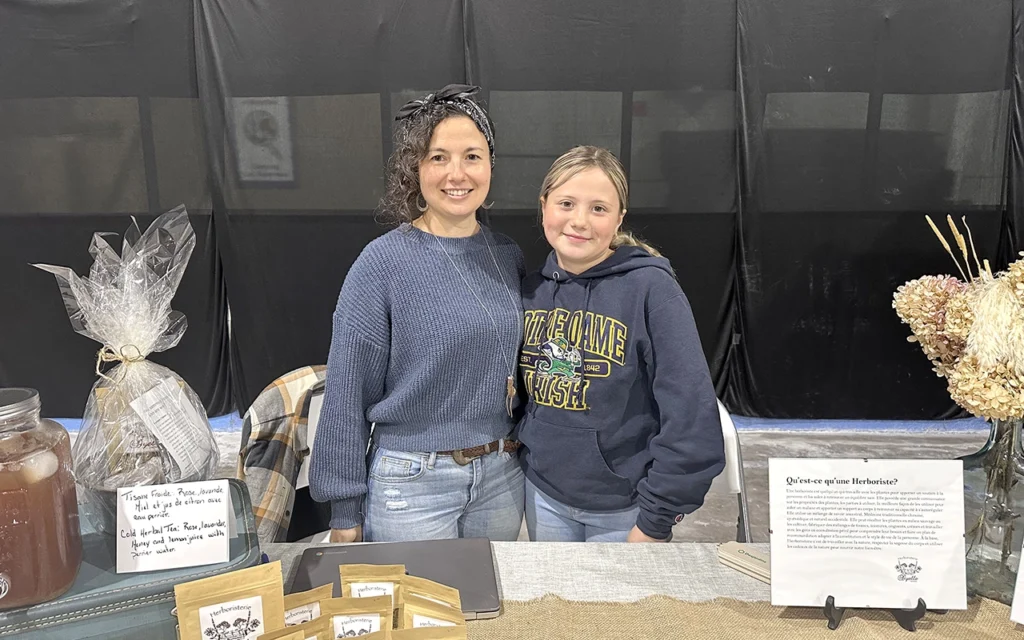 Mansfield herbalist Chanatel Dyelle (left), joined by her daughter Taylor Bélair, was among the 23 local entrepreneurs who set up shop at the Pontiac business expo Saturday in Fort Coulonge. Sarah Pledge Dickson