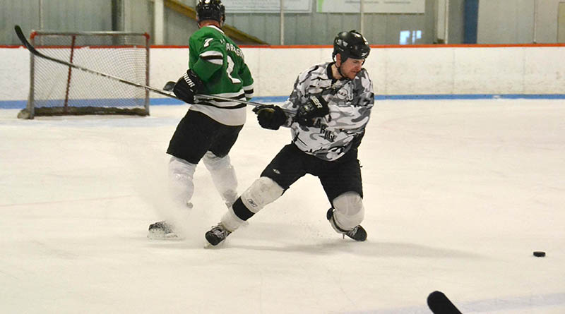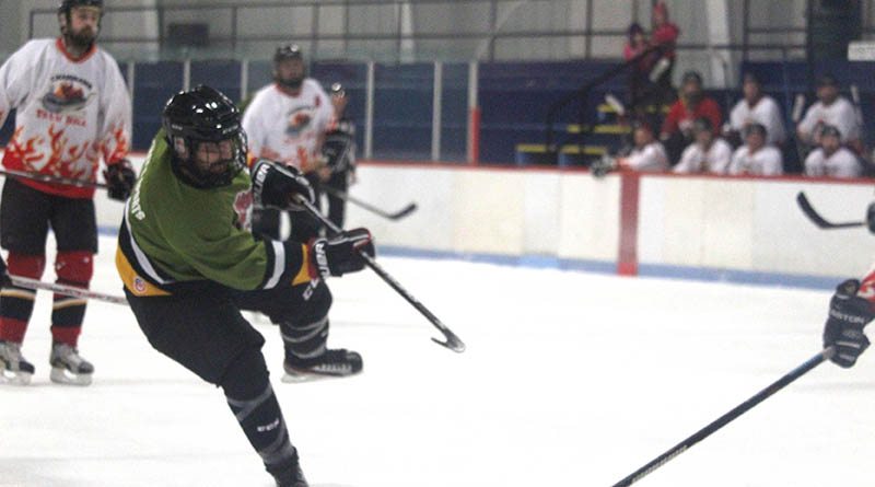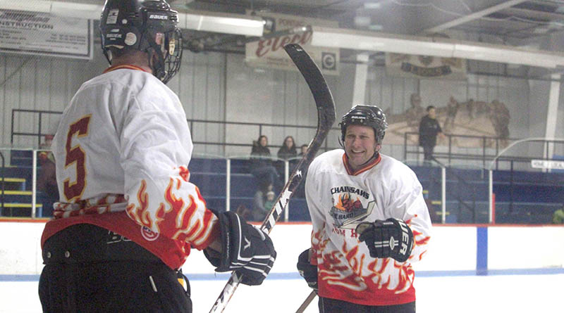 On March 28, around 60 Pontiac residents took the stands at the Shawville Arena for an on-ice battle between the Flying Elbows the and the Chainsaws from Hell alumni squads.