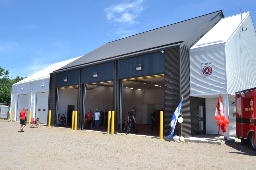 Thorne celebrated Canada Day in its own special way, with the official opening of their brand new municipal garage and fire hall. The building will serve double duty, housing three fire trucks on one side and the municipal vehicles and equipment on the other.