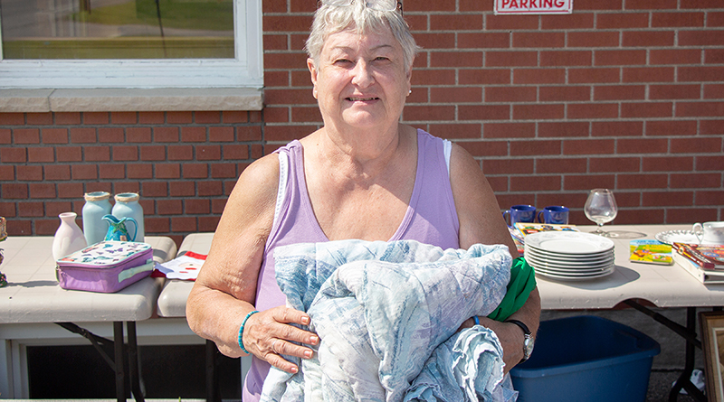 Barb Ostrom of Shawville was one of the people browsing tables at the giveaway, and was pleased to take home a couple of blankets and quilts.