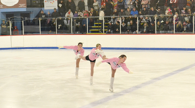 Senior Star skaters Gabrielle Keller, Grace MacKechnie and Nora MacKechnie performing Polar Express: Winter Wonderland.