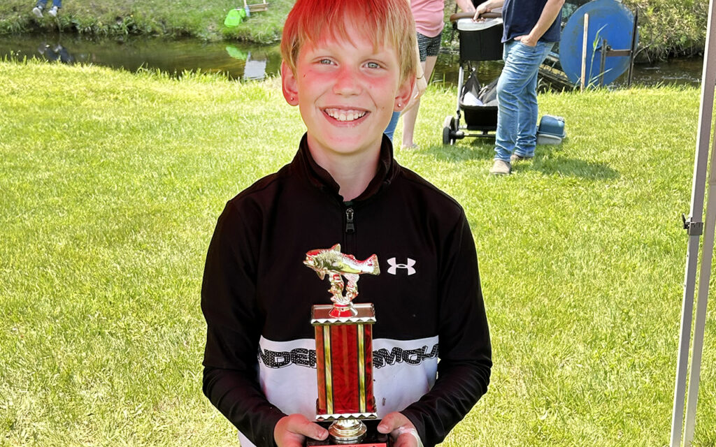 Archie Beattie caught three fish to make a total length of 27.25 inches, making him the winner of this year’s Shawville fishing derby in the boys division. Photo: Submitted by Wes Tubman