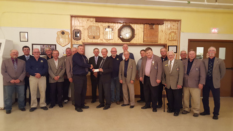 The Shawville Lions Club made a significant pledge to the fundraising efforts of the Villa James Shaw on Thursday. The Lions agreed to contribute $50,000 to the non-profit retirement residence over a period of five years, once shovels break ground at the site in town. Pictured, Albert Armstrong accepts a cheque on behalf of the Villa James Shaw, from Lion Paul Scheel, while surrounded by more members. The Lions were also proud to share that they had raised $1,700 for CHEO at their annual barbeque on June 1, with the Shawville Lionettes raising an additional $500 to contribute, too.