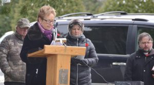 Following the singing of “O Canada,” Murray and Armstrong read out the names of the honoured dead from both municipalities. Cpl. Caroline Dayon played the “Last Post” and “Reveille” on trumpet before Pontiac Warden Jane Toller recited “In Flanders Fields.”