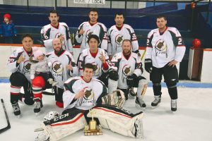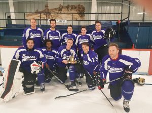 Team Martineau took the B division finals on Sunday afternoon. Back row, from left: Sebastien Constantineau, Julian Dumont, Steve Wawatie and Stephane Bergeron. Middle row, from left: Wyatt Dumont, Neil Chabot (with daughter Alie), Cody Tolley and Miguel Branchaud. Front, James Marnier.
