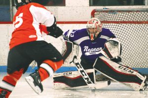 The sixth annual Fish Findlay Classic took over Shawville on the weekend, seeing over 20 teams compete in four divisions. Pictured: Goalie Matt Jenkins defends the net in one of the A Division semi-final games.