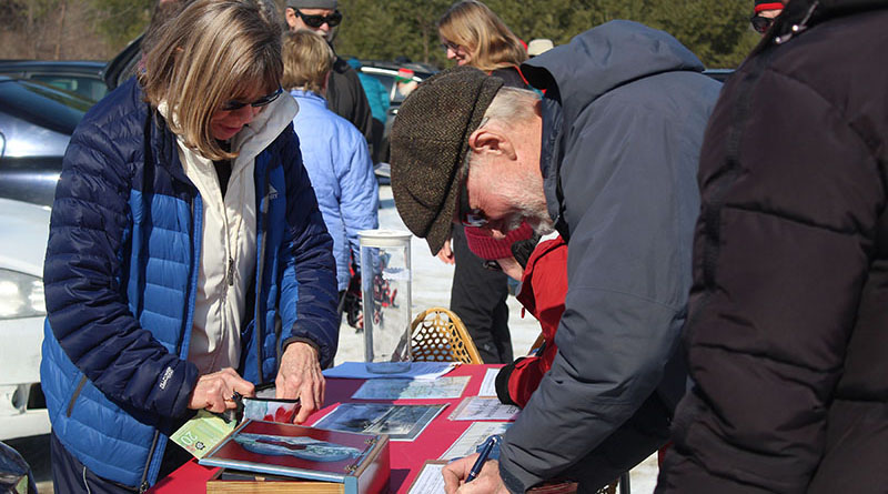 Participants sign up for Friends of Chat Falls memberships before taking off.