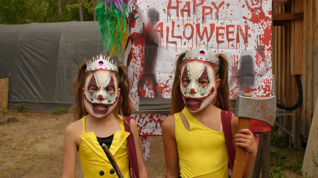 Payeton Earle (left) and Rory Bent (right) dressed up as killer clown princesses for this year’s Halloween in Sand Bay.