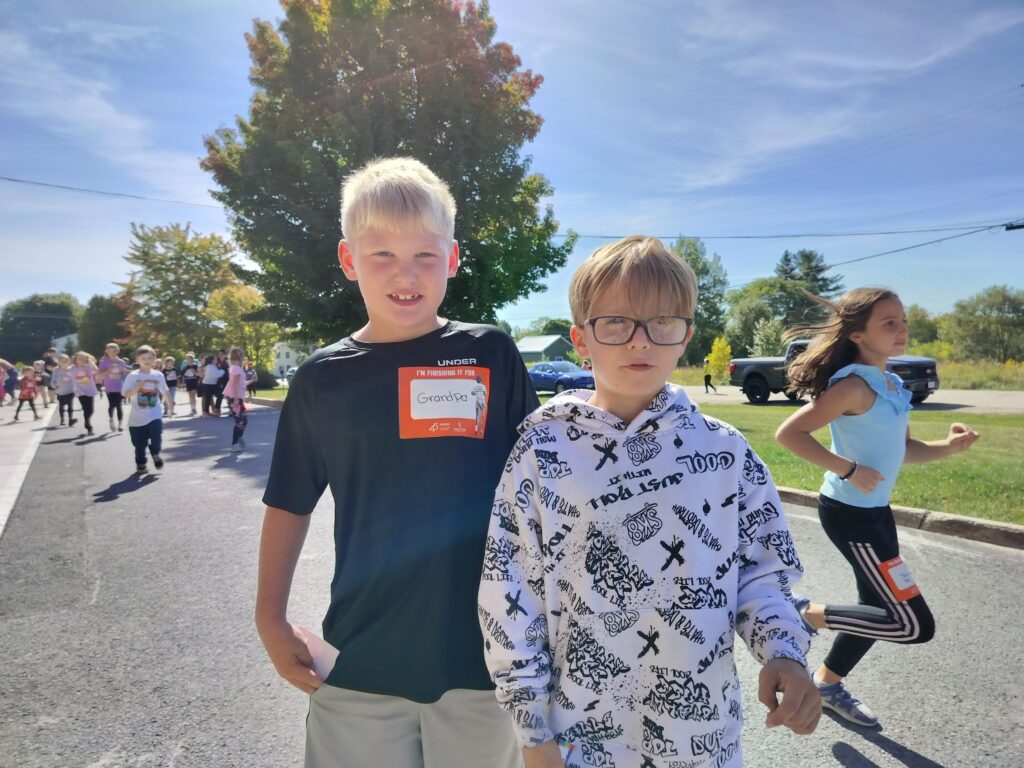 In what was at least the school’s twenty-fifth annual run according to principal Lorianne Bertrand, Grade 5 and 6 students followed a route along the PPJ trail while the rest of the grades went around the school’s bus circle.