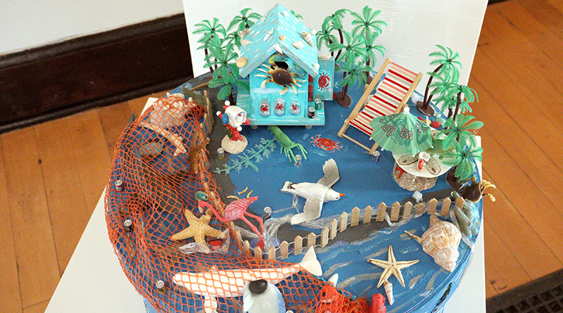 Some of the themes she explored in her collection of cheese boxes include climate change, animal cruelty and more. Some have a deep narrative, others have a lighthearted theme, the idea is that one can look at them and you can feel like a child and be entranced, or you can be an adult, and look at them with a more critical eye and see more, she explained.