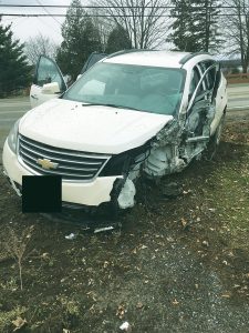 The front driver’s side of an SUV was torn off when the vehicle crossed the centre lane on Hwy. 148 on Dec. 7.
