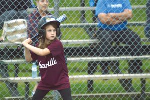 Held at the Shawville Recreation Association baseball diamond, the playoffs are scheduled to run through to Aug. 21, with the finals kicking off next Tuesday evening. Here, Shawville 2’s Chloe Trudeau gets her game face on in anticipation of a big throw. Shawville 2 would go on to win this game, marking the first time all season they’ve managed to topple Shawville 1.
